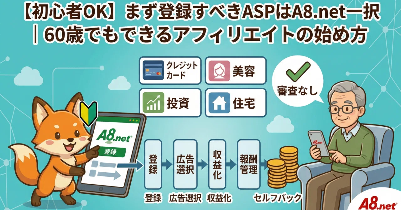 【初心者OK】まず登録すべきASPはA8.net一択|60歳でもできるアフィリエイトの始め方